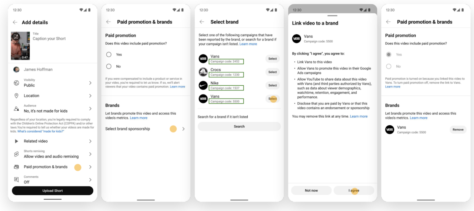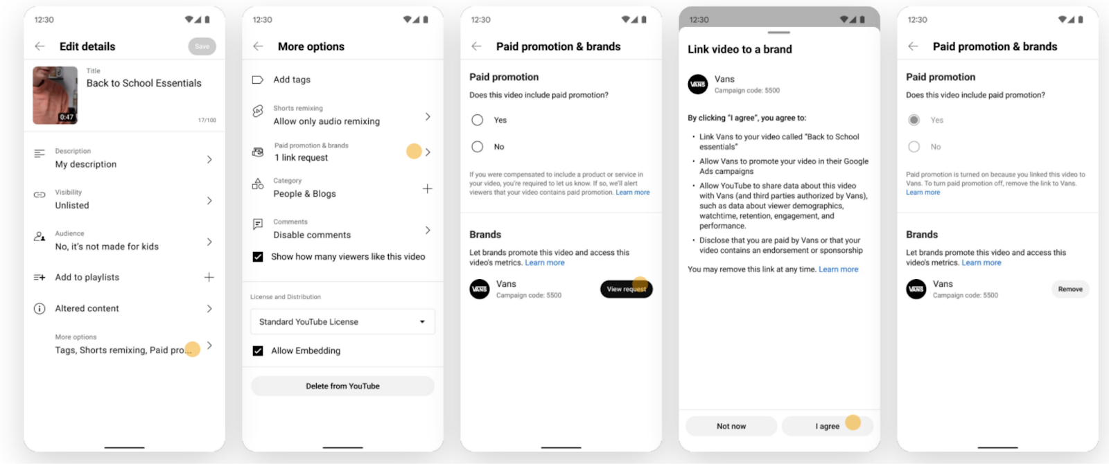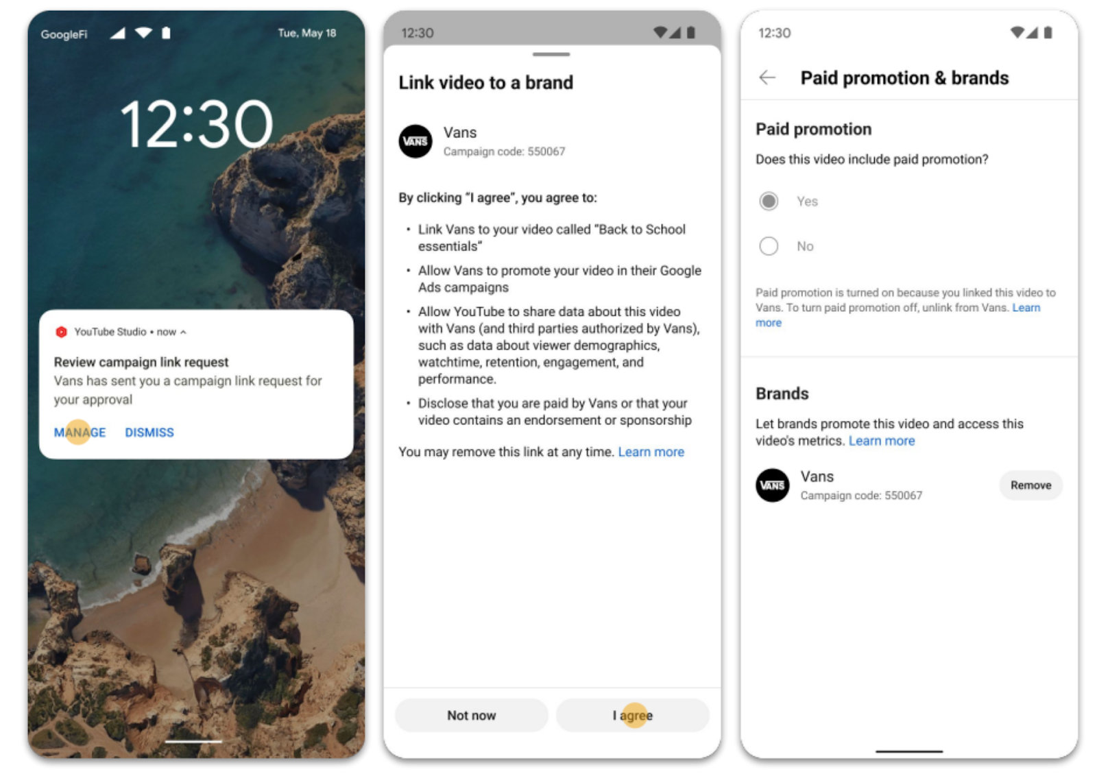 Additionally, if your #paid CSM tries to validate your post and sees it hasn’t been linked yet, they can trigger a push notification to your YouTube app prompting you to link the video. You’ll receive a pop-up directly in YouTube guiding you into the linking flow.